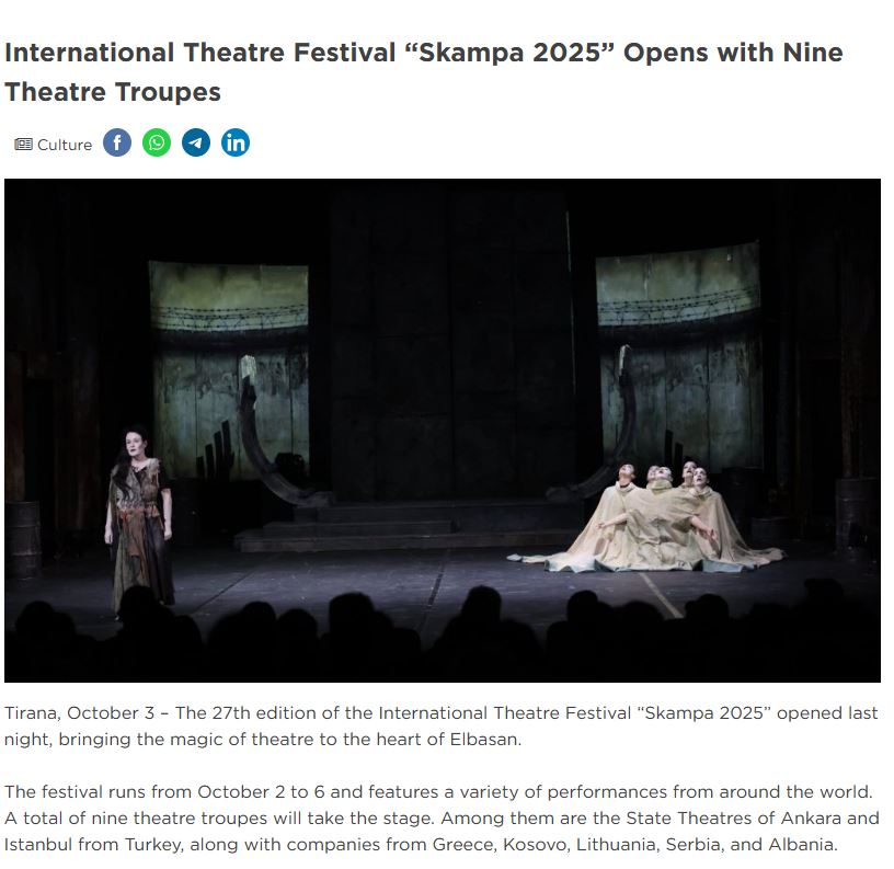The festival brings together local and international artists, reinforcing Skampa’s role as a key platform for contemporary theatre and international collaboration.